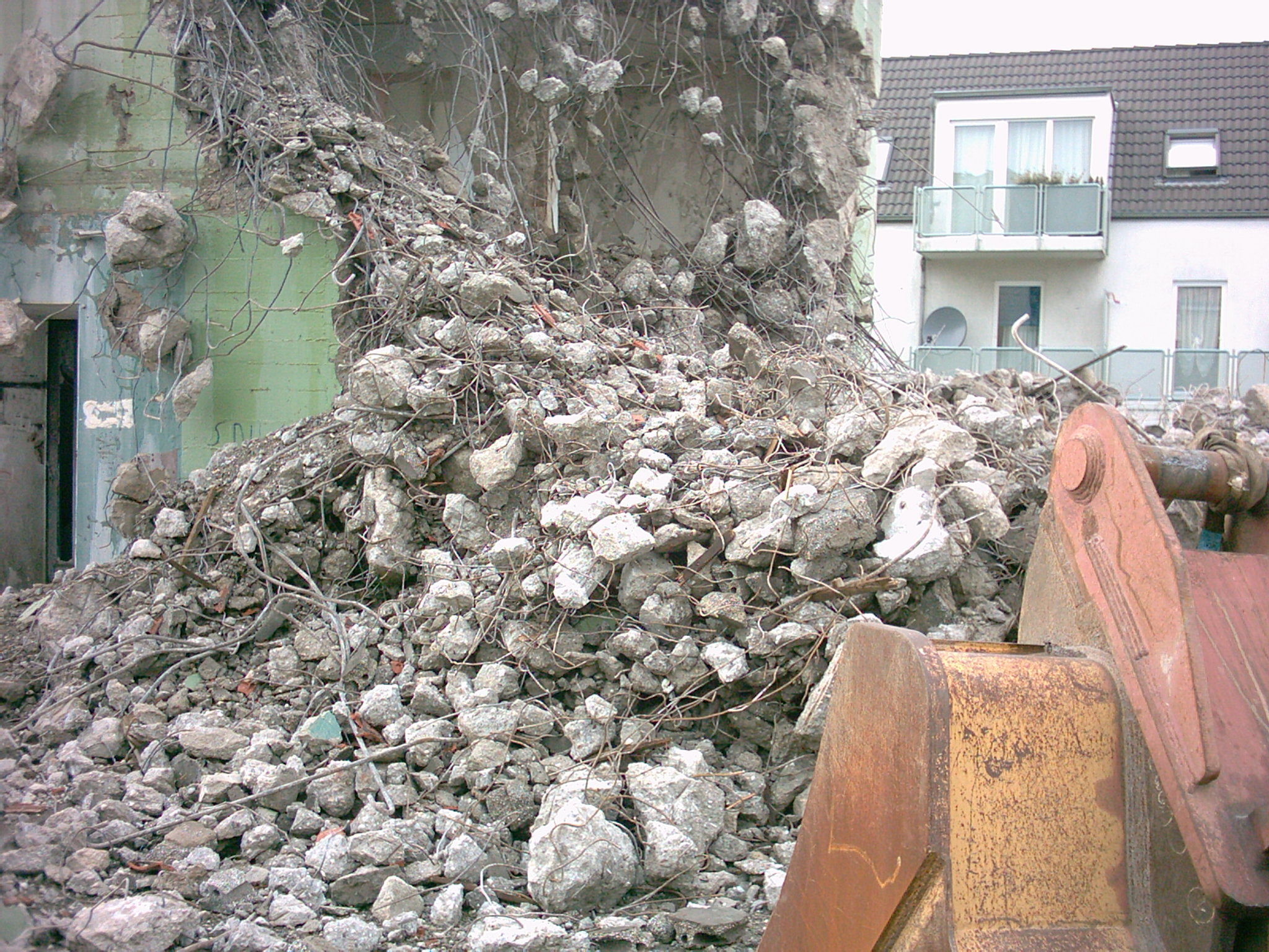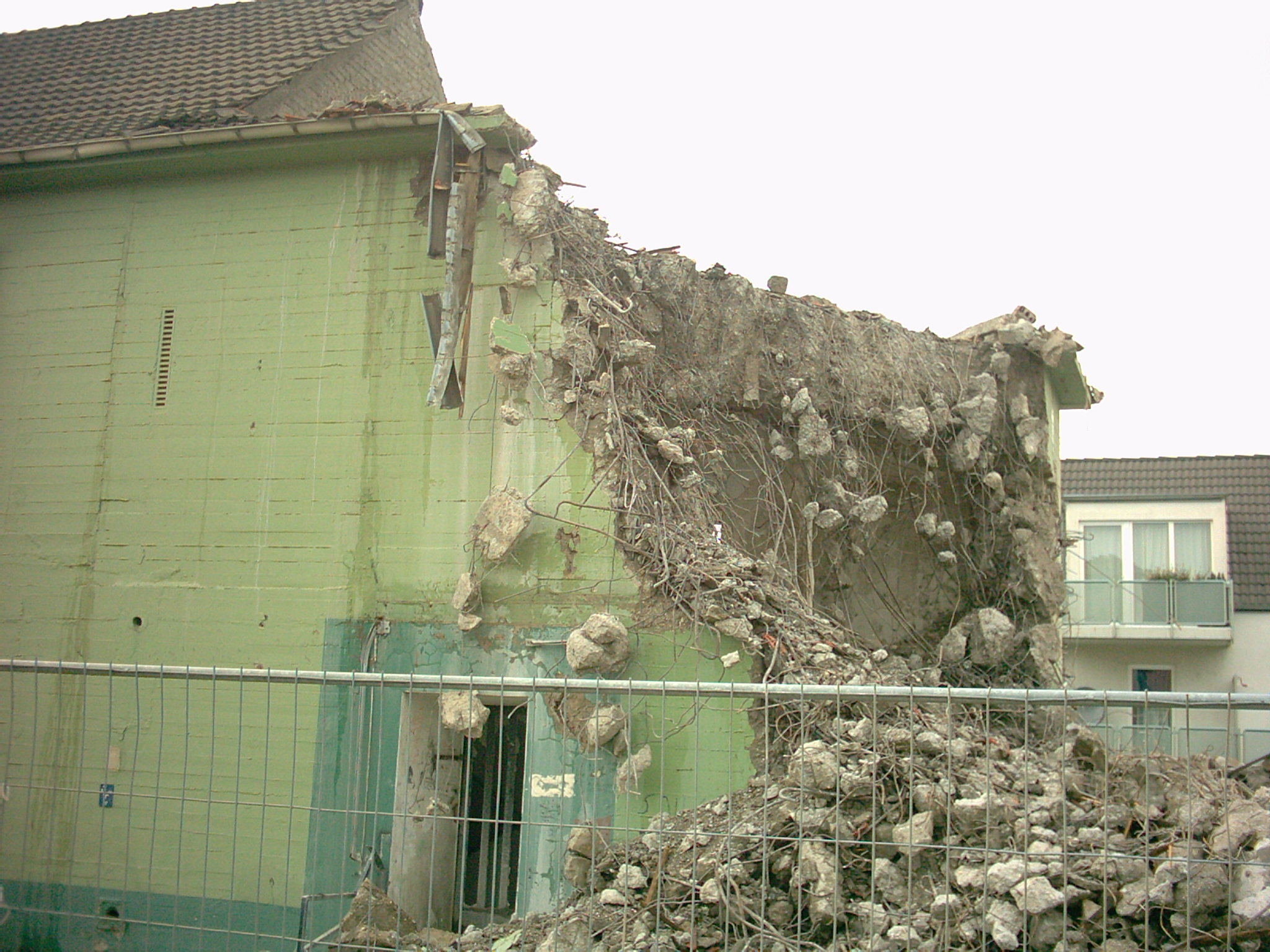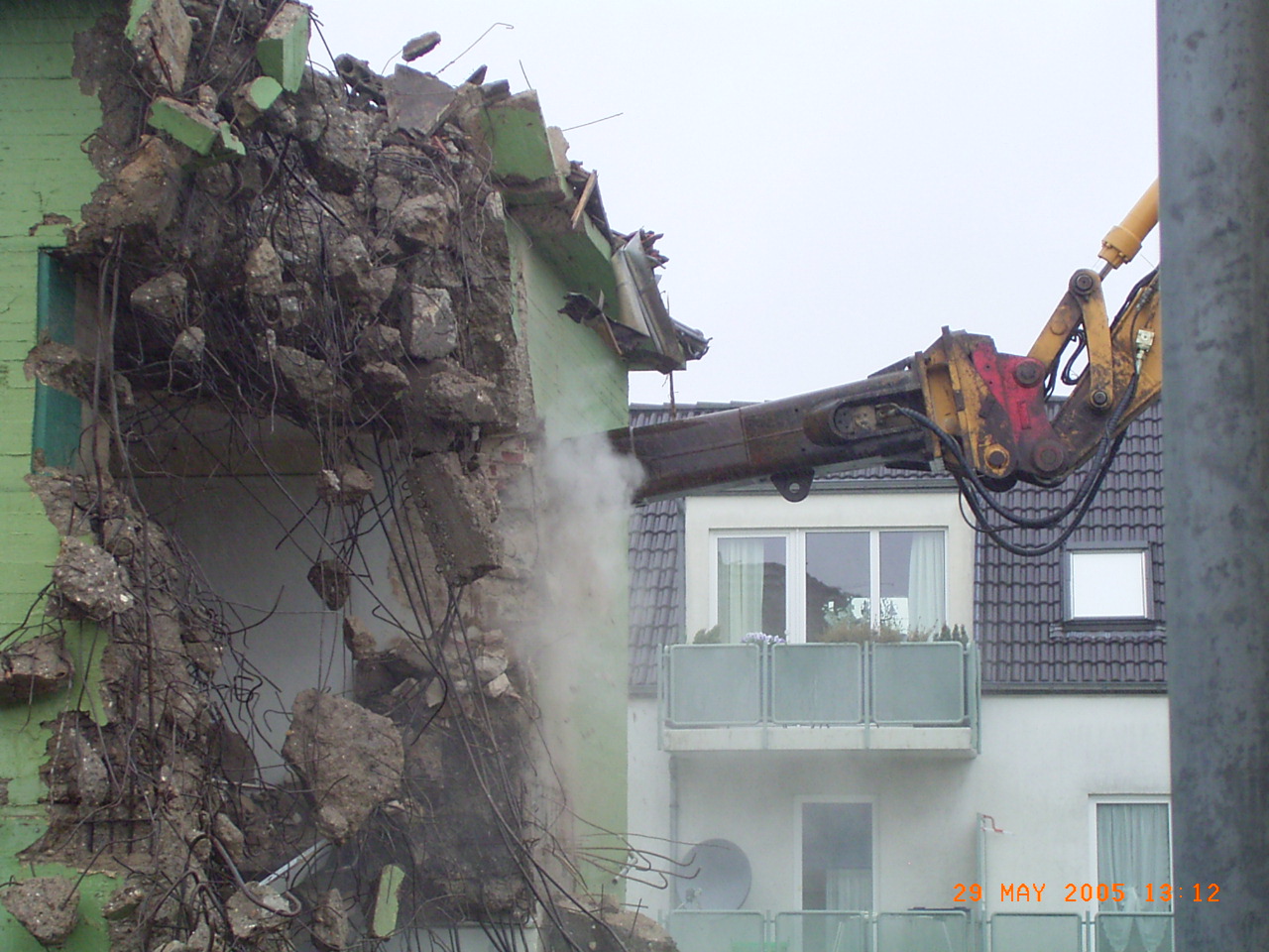 stoppte Bunker-Abriss Der Abbruch des Bunkers in der Siedlung Heidehöhe entpuppt sich für die WGL zunehmend als harte Nuss. Jetzt wird vielleicht doch noch gesprengt. „Schön ruhig heute“, freut sich Klaus Drüke. Dessen Haus steht keinen Steinwurf von der Schutthalde aus zermeißeltem Bunkerbeton und verbogenem Baustahl entfernt. Sechs Tage lang hatte sich im Auftrag der Wohnungsgesellschaft Leverkusen (WGL) ein riesiger Bagger mit einem beindicken Stahlmeißel an dem Bunker aus dem letzten Vorkriegsjahr 1938 zu schaffen gemacht und die Anwohner schier zur Verzweiflung gebracht. Ungefähr ein Drittel des 51 Meter langen und 11,50 Meter breiten Schutzraums hatte der Baggerfahrer in den letzten Tagen zerkleinern können, einmal zerbrach sogar der Meißel, jetzt stoppte das Umweltamt den lautstarken Abriss. Die Interessengemeinschaft Siedlung Heidehöhe hatte sich mit einem Brief an die Leverkusener Bauaufsicht gewandt, schon kurz nachdem die ersten Schläge getan waren, wie deren Sprecher Dirk Strauch sagte. „Wir haben die Sicherung der Baustelle beanstandet, sogar Kinder sind in den Trümmern herumgeklettert“, so Strauch. Außerdem habe man die Frage nach der Zulässigkeit der ohrenbetäubenden Meißelei gestellt und die Bauaufsicht gebeten, auf die Baustelle Acht zu geben. Die Folge: Das von Bauaufsicht und WGL zugleich informierte staatliche Umweltamt maß mit 96 Dezibel am Haus von Klaus Drüke zwar noch keinen Diskothekenwert. Immerhin sei der Wert aber so hoch gewesen, dass das Umweltamt der Wohnungsgesellschaft nahe gelegt habe, einer amtlichen Anordnung zuvor zu kommen und die Baustelle lieber selbst still zu legen. Das sagte Stefan Altenbach, technischer Prokurist der WGL, auf Anfrage. Seit Montag früh ist nun also erst einmal Ruhe in der Heidehöhe. Wie es weitergeht? Jedenfalls nicht ohne Lärm, so Altenbach. Die Abbruchfirma prüfe zwar auch Preis und Verfügbarkeit einer Hydraulikzange, die es nach deren Aussage in der benötigten Übergröße aber nur zweimal in Europa gebe. Als wahrscheinlichere Methode für den Abriss, und das sagte Altenbach eher zögerlich, sehe er aber mehrere so genannte kleine „Lockerungssprengungen“. Damit würde zwar nicht alle, aber ein Großteil der Meißelarbeiten überflüssig. Nur, alleine schon das Wort Sprengung rufe ein gewisses Unbehagen bei der Bevölkerung hervor. Altenbach: „Das müssen wir mit den Anwohnern besprechen.“ |