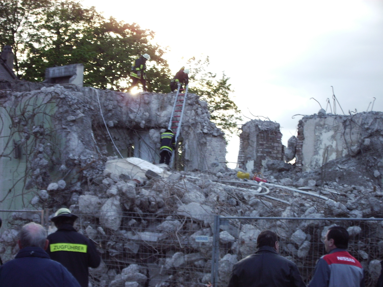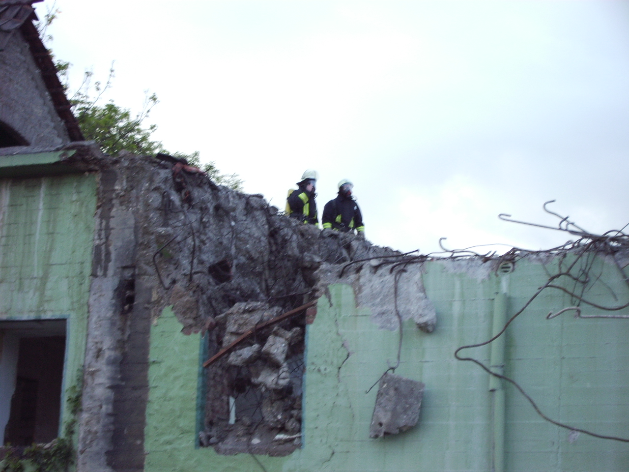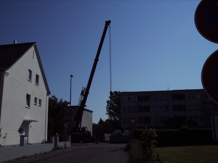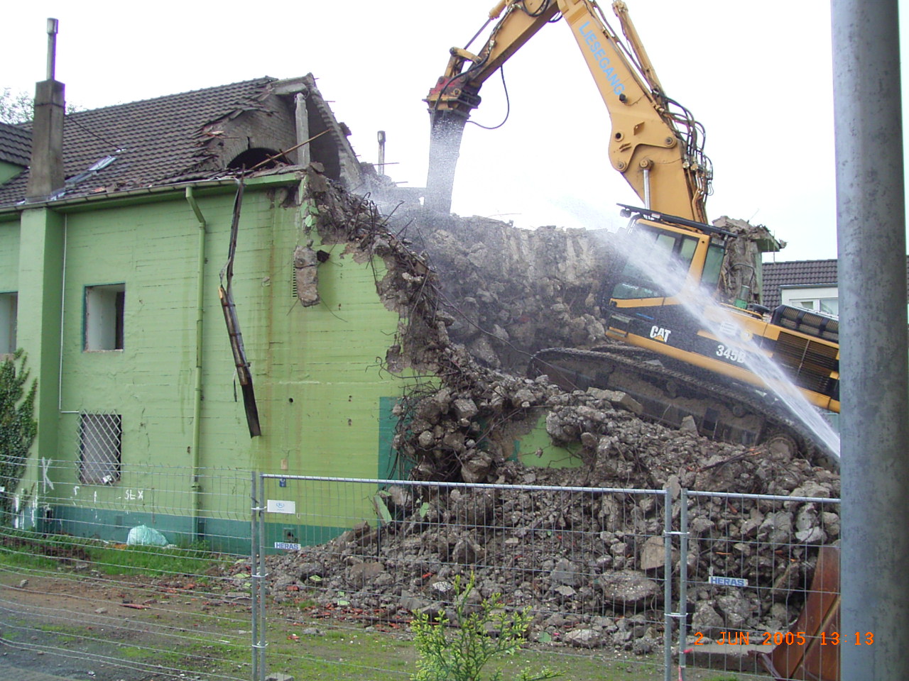 stoppte Bunker-Abriss Der Abbruch des Bunkers in der Siedlung Heidehöhe entpuppt sich für die WGL zunehmend als harte Nuss. Jetzt wird vielleicht doch noch gesprengt. „Schön ruhig heute“, freut sich Klaus Drüke. Dessen Haus steht keinen Steinwurf von der Schutthalde aus zermeißeltem Bunkerbeton und verbogenem Baustahl entfernt. Sechs Tage lang hatte sich im Auftrag der Wohnungsgesellschaft Leverkusen (WGL) ein riesiger Bagger mit einem beindicken Stahlmeißel an dem Bunker aus dem letzten Vorkriegsjahr 1938 zu schaffen gemacht und die Anwohner schier zur Verzweiflung gebracht. Ungefähr ein Drittel des 51 Meter langen und 11,50 Meter breiten Schutzraums hatte der Baggerfahrer in den letzten Tagen zerkleinern können, einmal zerbrach sogar der Meißel, jetzt stoppte das Umweltamt den lautstarken Abriss. Die Interessengemeinschaft Siedlung Heidehöhe hatte sich mit einem Brief an die Leverkusener Bauaufsicht gewandt, schon kurz nachdem die ersten Schläge getan waren, wie deren Sprecher Dirk Strauch sagte. „Wir haben die Sicherung der Baustelle beanstandet, sogar Kinder sind in den Trümmern herumgeklettert“, so Strauch. Außerdem habe man die Frage nach der Zulässigkeit der ohrenbetäubenden Meißelei gestellt und die Bauaufsicht gebeten, auf die Baustelle Acht zu geben. Die Folge: Das von Bauaufsicht und WGL zugleich informierte staatliche Umweltamt maß mit 96 Dezibel am Haus von Klaus Drüke zwar noch keinen Diskothekenwert. Immerhin sei der Wert aber so hoch gewesen, dass das Umweltamt der Wohnungsgesellschaft nahe gelegt habe, einer amtlichen Anordnung zuvor zu kommen und die Baustelle lieber selbst still zu legen. Das sagte Stefan Altenbach, technischer Prokurist der WGL, auf Anfrage. Seit Montag früh ist nun also erst einmal Ruhe in der Heidehöhe. Wie es weitergeht? Jedenfalls nicht ohne Lärm, so Altenbach. Die Abbruchfirma prüfe zwar auch Preis und Verfügbarkeit einer Hydraulikzange, die es nach deren Aussage in der benötigten Übergröße aber nur zweimal in Europa gebe. Als wahrscheinlichere Methode für den Abriss, und das sagte Altenbach eher zögerlich, sehe er aber mehrere so genannte kleine „Lockerungssprengungen“. Damit würde zwar nicht alle, aber ein Großteil der Meißelarbeiten überflüssig. Nur, alleine schon das Wort Sprengung rufe ein gewisses Unbehagen bei der Bevölkerung hervor. Altenbach: „Das müssen wir mit den Anwohnern besprechen.“ |